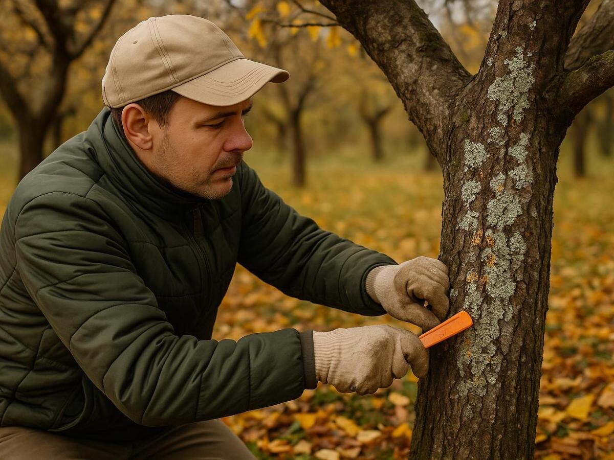 Механическое удаление в сочетании с мягкой дезинфекцией считается самым безопасным способом. Оно позволяет убрать лишайник и не повредить камбий.