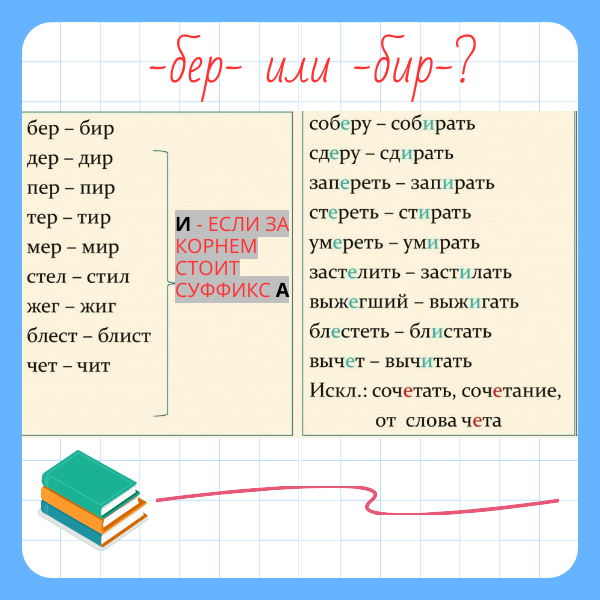 ❗ Все очень просто: ✔️ Если за корнем присутствует суффикс -а-, то пишется «и», если нет — «е»