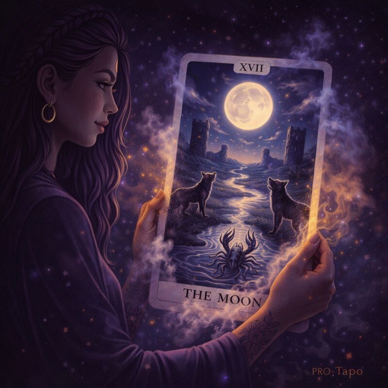 Луна указывает на период, где ориентиры есть, но они размыты, противоречивы или нестабильны. 👉 Проблема не в опасности, а в интерпретации. В классическом аркане - пёс и волк.