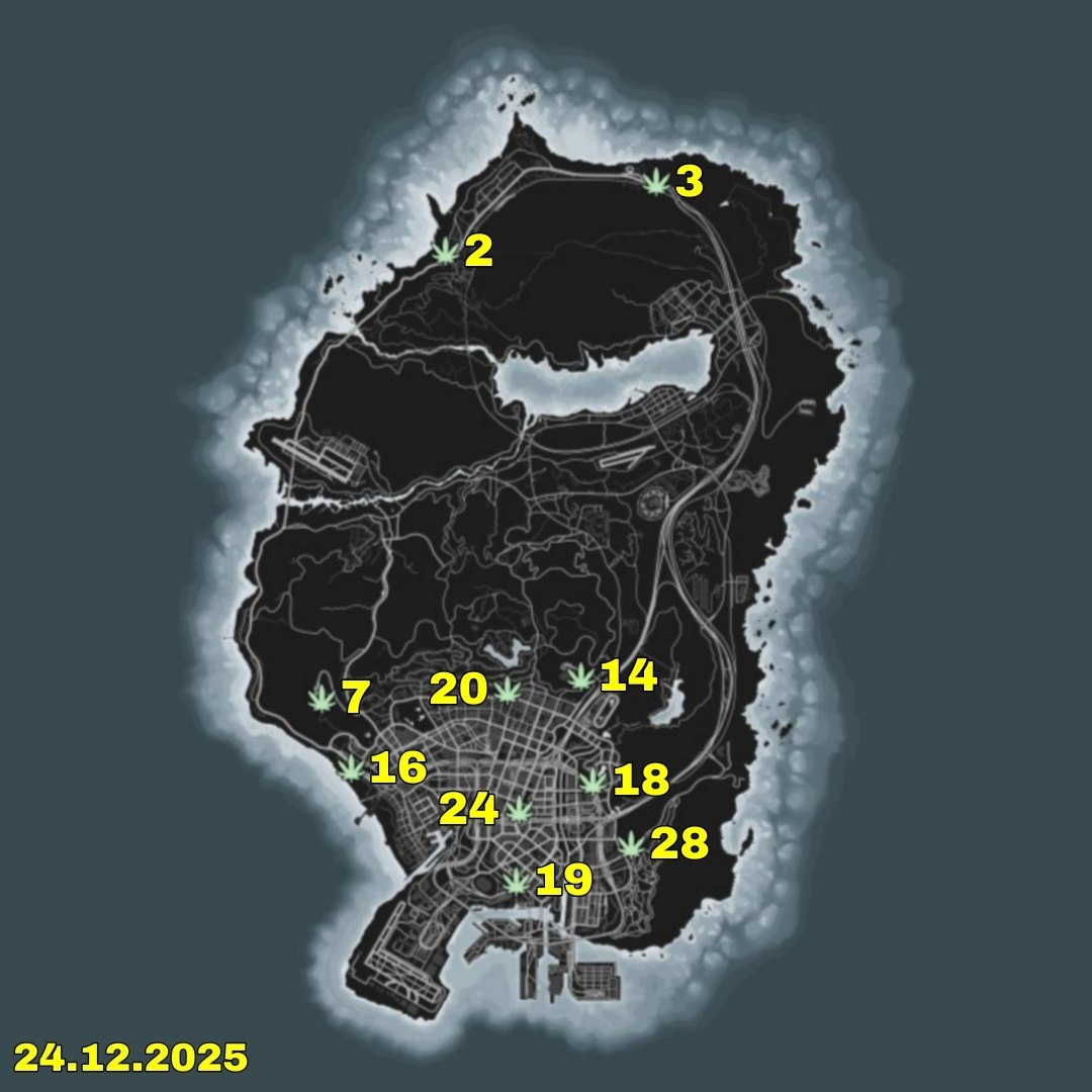 Расположение продукции "Smoke on the Water" в GTA Online на сегодня (24 декабря