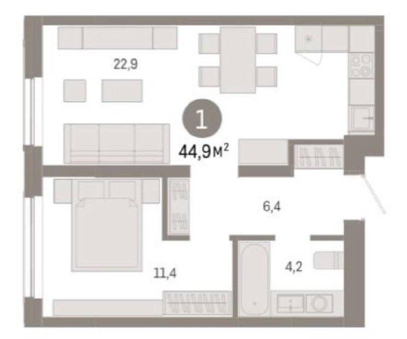 Вылетела из брони двушка-студия 44,9 м2 за 8 530 000₽