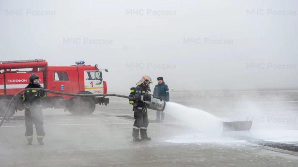 В аэропорту региона прошли масштабные учения по ликвидации авиационной аварии. Спасатели отработали эвакуацию пассажиров, тушение пожара и нейтрализацию опасного разлива топлива. В ходе учений в Брянской области авиационная служба отработала сценарий возгорания пассажирского самолета после посадки. Командир воздушного судна сообщил о задымлении в кабине пилотов и разливе топлива. На место инцидента оперативно прибыли пожарные расчёты аэропорта. Сотрудники аварийно-спасательной команды организовали эвакуацию «пострадавших» и выгрузку багажа, оказав первую медицинскую помощь. Разлив нефтепродуктов, угрожавший зданию аэровокзала, был оперативно ликвидирован силами пожарно-спасательных подразделений Брянского гарнизона. Учение позволило отработать практические навыки тушения условного пожара и взаимодействия служб аэропорта. В мероприятии приняли участие 44 человека и 15 единиц техники. Ранее мы сообщали, что в Брянске прошёл квиз по безопасности для школьников. В Брянской области потушили