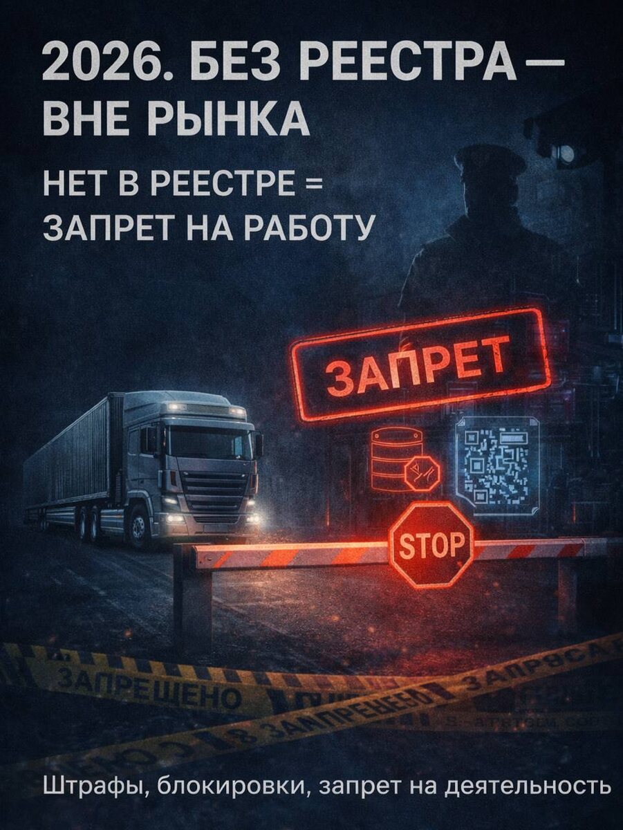 Важно сразу зафиксировать: речь не только про штрафы. Речь про право вообще работать как экспедитор или организатор перевозок. С 2026 года реестр — это пропуск на рынок. Разбираю по пунктам 👇 1️⃣Прямой запрет на деятельность Закон прямо закрепляет: оказывать транспортно-экспедиционные услуги можно только при наличии записи в реестре. 📌 Старт реестра — 1 марта 2026 года 📌 Срок на подачу уведомления — 60 дней Если ИП или компания: ▪️ не подали сведения ▪️ не включены в реестр 👉 они теряют право заниматься экспедиторской деятельностью. Что это значит: • любой договор экспедиции — под риском • высокие шансы признания сделок незаконными • проблемы с налоговой, судами и контрагентами Фактически — работа приравнивается к деятельности без обязательной регистрации/разрешения. 2️⃣КоАП и административная ответственность Отдельной статьи КоАП «за работу без реестра» пока нет. Но это не значит, что наказаний не будет. Работа без реестра логично подпадает под: ▪️ незаконную предпринимат