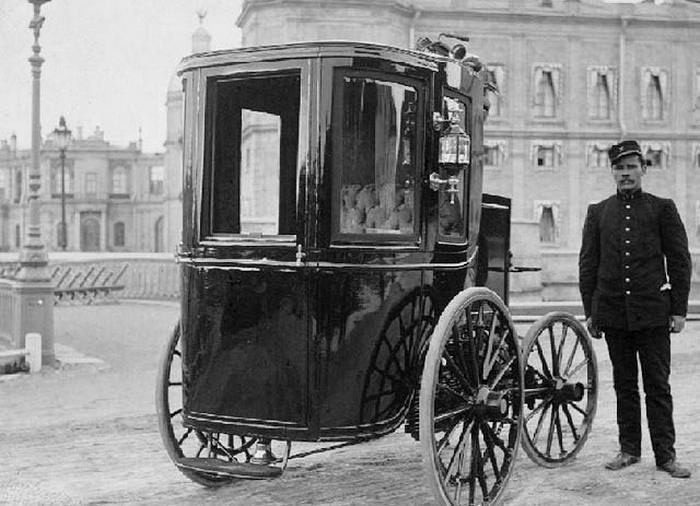 Первый прототип был создан на основе классического английского кэба с открытым пассажирским салоном, что ограничивало его использование теплым временем года.