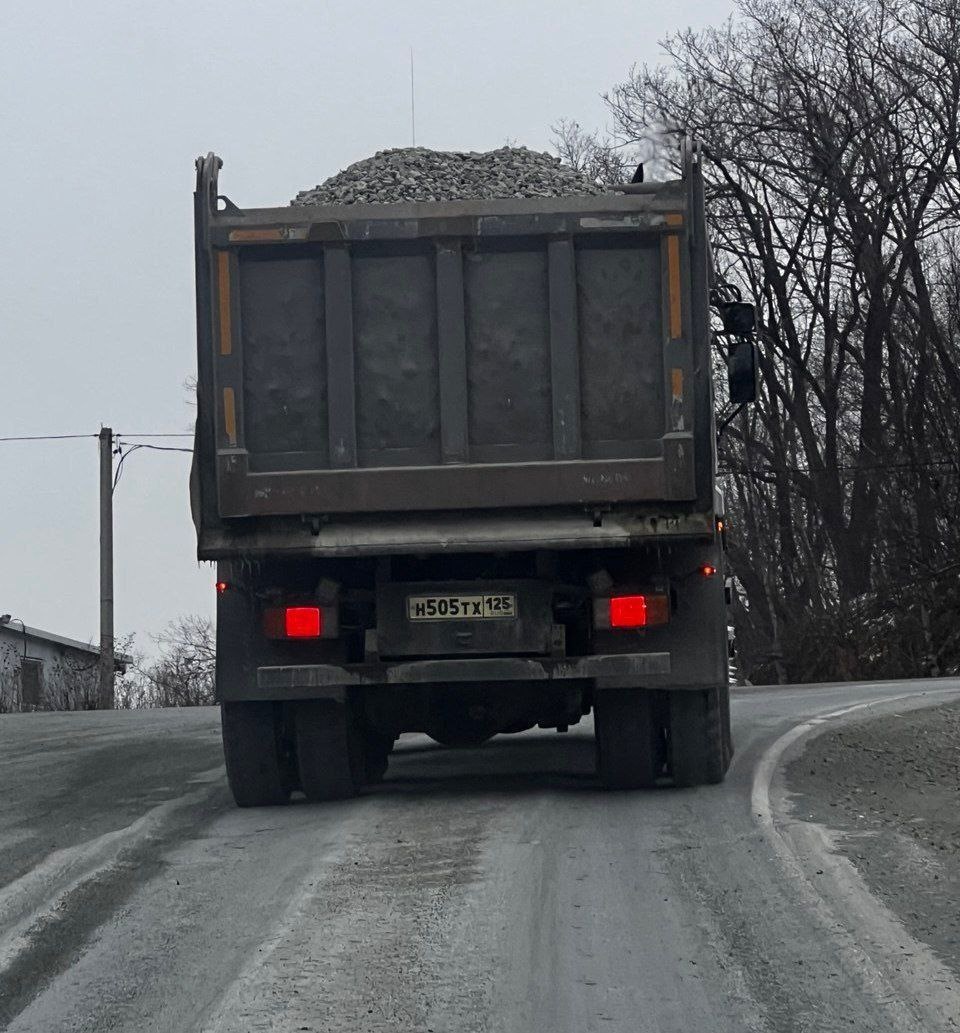В Артёме оштрафовали водителя грузовика, который перевозил ненакрытый сыпучий груз (скальник) на Суражевском перевале