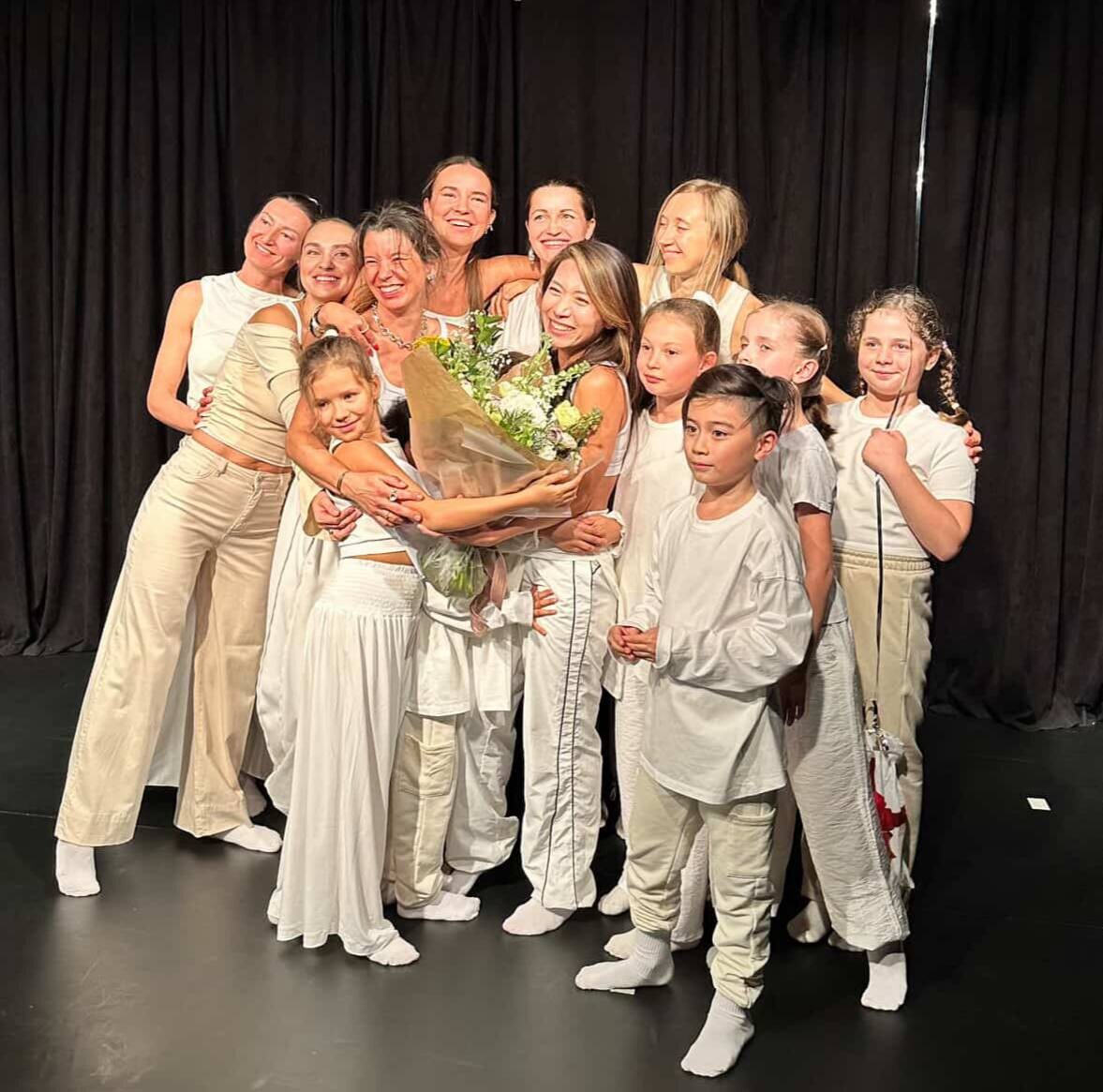 🌿💃 Кажется, совсем не случайно. Я рассказывала вам про танцы и про моего преподавателя — а вчера как раз было выпускное занятие. Мы показали номер, который учили. И в этот момент очень ясно стало видно: работает только связка. Смотреть — и делать. Делать — и снова смотреть. Когда ты смотришь, тело учится. Когда делаешь — закрепляется. И одно без другого будто бы неполно. На этой фотографии — мы все вместе после выступления. С эмоциями, которые просто не помещаются внутри. Мы сделали это. Мы показали. Мы радостные, живые, довольные собой. И, конечно, в руках у преподавателя — букет. Тот самый, который я показывала вам чуть выше. Как будто ещё одна точка соединения двух миров. И знаете, что интересно? Сегодня утром я поймала себя на том, что разглядываю видео сборки букета, которое записывала раньше. Просто смотрю. Без анализа. И снова чувствую — глаз учится раньше рук. Цветы и танцы здесь вдруг стали одним языком. Про движение. Про внимание. Про проживание. Чтобы получалось —