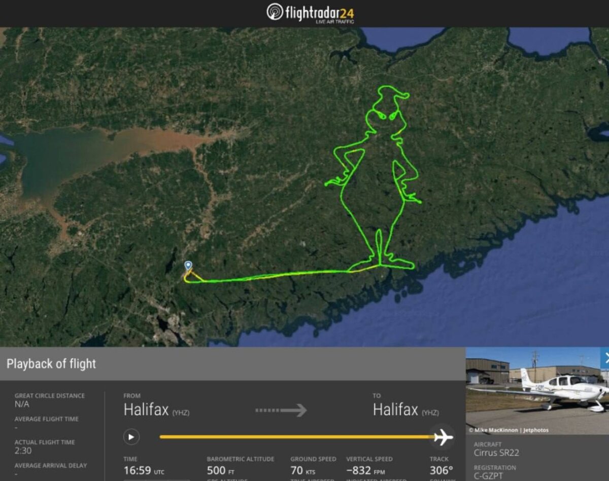 В Канаде пилот, управляя легкомоторным самолетом, потратил 2,5 часа, но зато нарисовал Гринча.. 👻