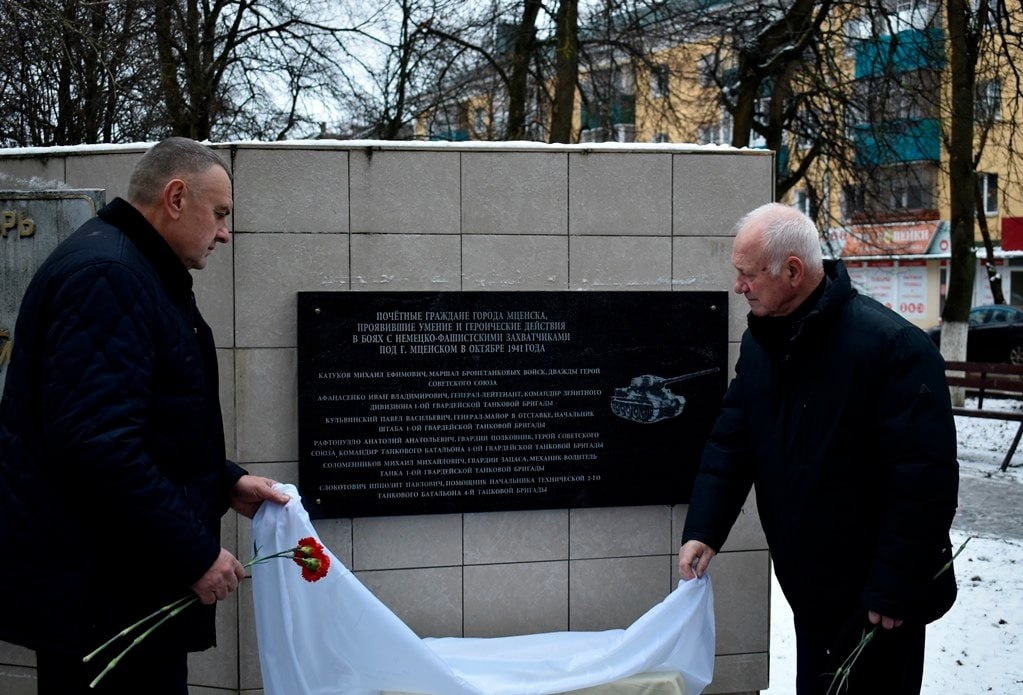Торжественное открытие мемориальной доски в память о почетных гражданах города Мценска, проявивших мужество и героизм в боях с немецко-фашистскими захватчиками в октябре 1941 года, провели 22 декабря в сквере Танкистов-Первогвардейцев. https://mcenskij-kraj.ru/news/pamatnuu-dosku-v-cest-geroev-tankistov-otkryli-v-mcenske/