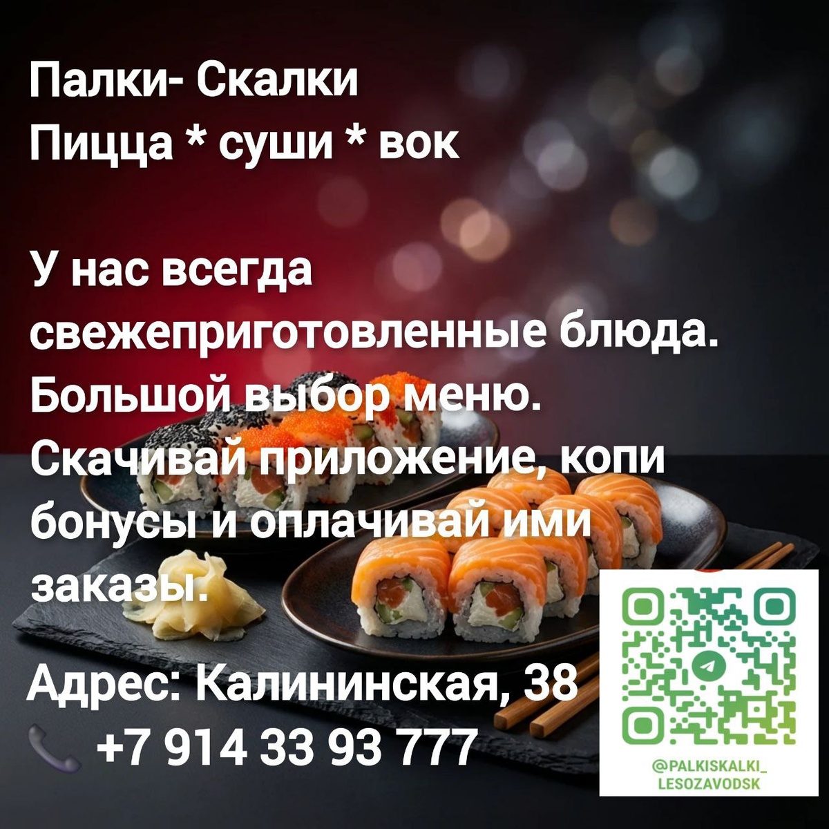 8-914-33 93 777 Адрес: ул. Калининская, 38 Телеграм https://t.me/palkiskalki_lesozavodsk