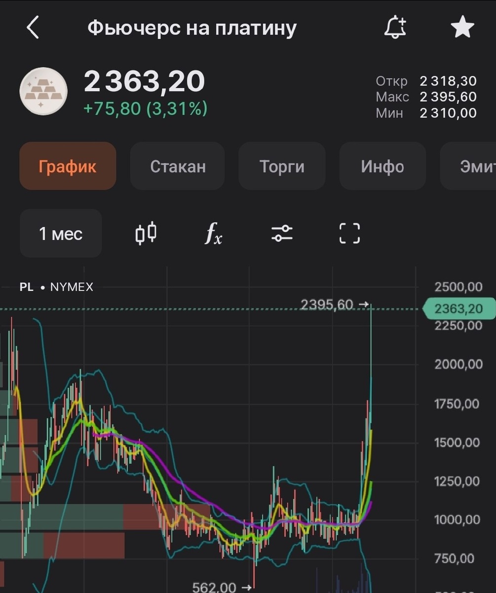 Платина Platinum берет Цель2 Aromath 2300+. И это новый максимум с 2008 года, таким образом есть нарисованный уже паттерн полусфера - будущая чашка с ручкой с превышением прошлых максимумов. Это очень красиво и правильно. Движение 2365 от 1612 за месяц дает +45% 🐷 План Aromath в действии ✅