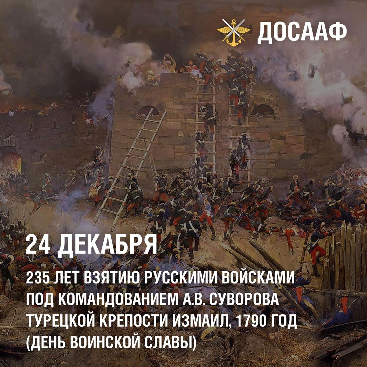 …» Так вспоминал Александр Суворов о взятии крепости Измаил, которое произошло 22 декабря 1790 года и стало знаковым событием Русско-турецкой войны (1787—1791). С 1995 года в честь этого события отмечается День воинской славы России. А разница в 2 дня обусловлена издержками перевода дат со старого стиля на новый. В те годы Измаил считался неприступной твердыней. Способный вместить армию, он был мощной крепостью с двумя частями, окруженной валом и рвом, и защищенной 35-40 тысячами гарнизона, включая янычар и легкую кавалерию. Тем не менее, для Российской империи его захват был жизненно необходим. В 1787 году Турция, подстрекаемая Англией и Пруссией, объявила войну России, требуя вернуть Крым и прекратить поддержку Грузии. Кампания 1788-1789 годов не принесла решительного успеха, но русские войска одержали победы под Фокшанами и Рымником, что позволило форсировать Дунай. Екатерина II требовала от Потёмкина активных действий, но он медлил. Османы усиливали Измаил, ожидая высадки десант