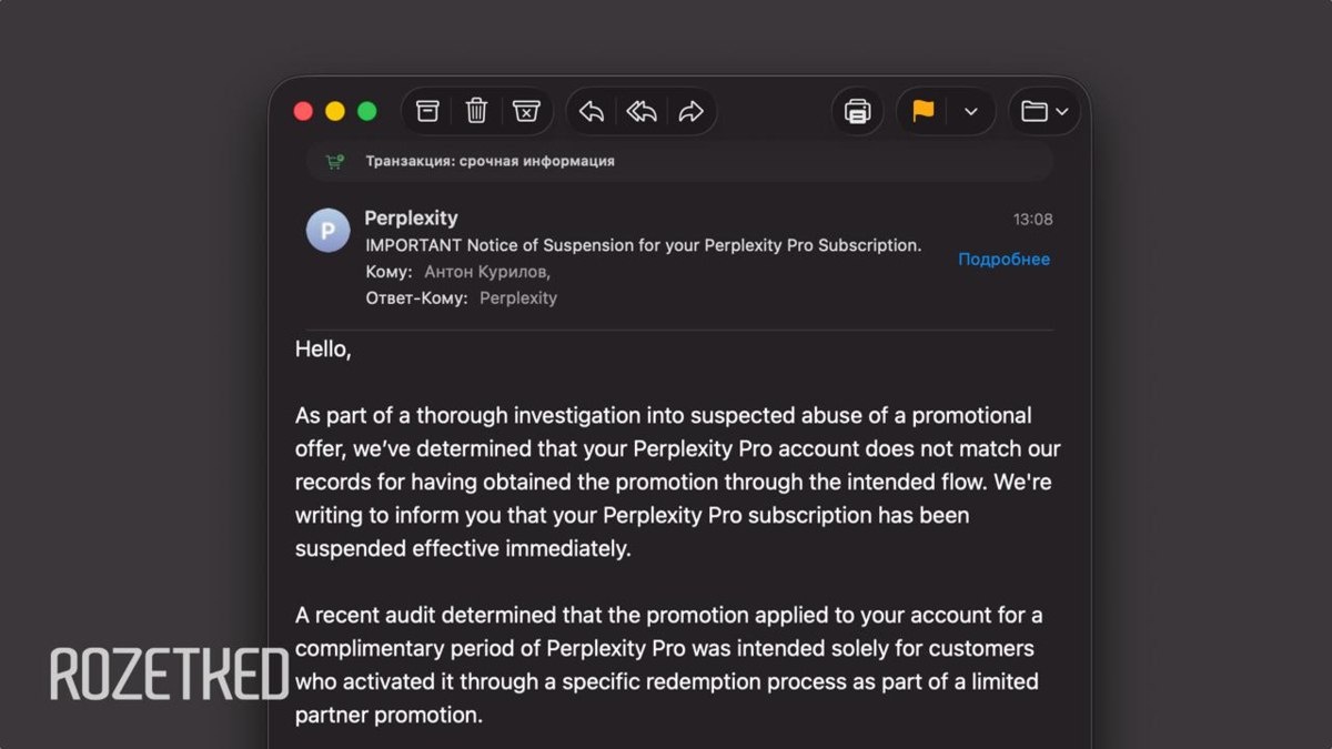 Perplexity разослал некоторым пользователям письма с уведомлением об отключении подписки Pro — это могло коснуться тех, кто купил доступ