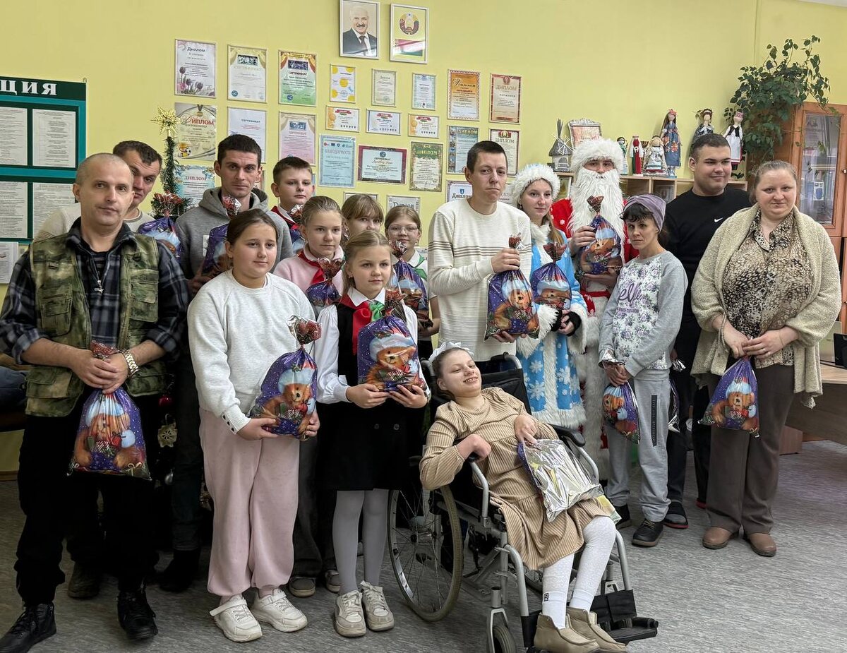 В рамках благотворительной акции «Чудеса на Рождество» тимуровский отряд «Доброделы» и члены ПО ОО «БРСМ» ГУО Ольшанская СШ 1 поздравили получателей услуг отделения социальной реабилитации, абилитации инвалидов в аг. Ольшаны ГУ «Столинский ТЦСОН» с наступающим Новым Годом. Дед Мороз и Снегурочка вручили ребятам сладкие подарки