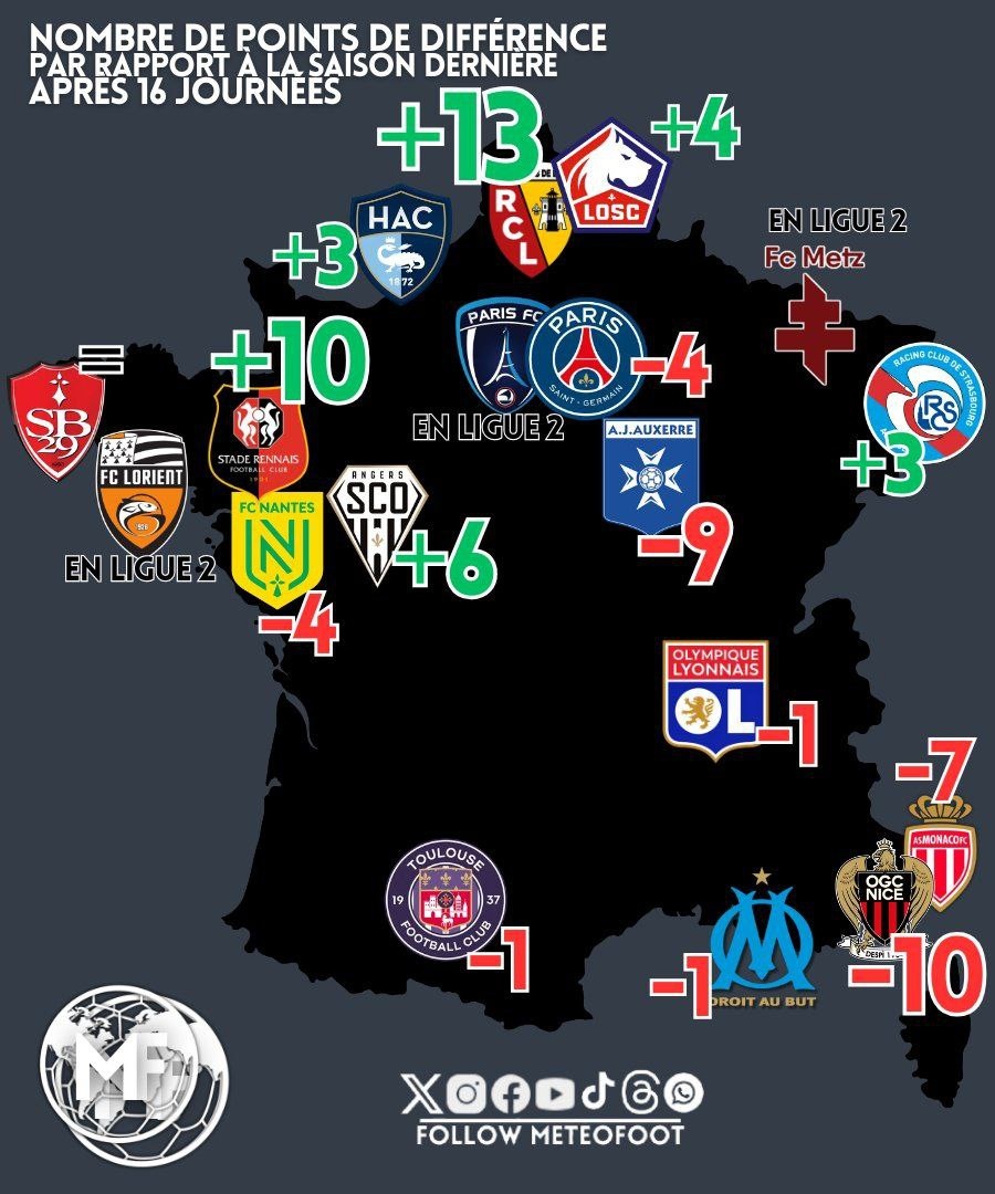 Разница в набранных очках, по сравнению с прошлым сезоном!