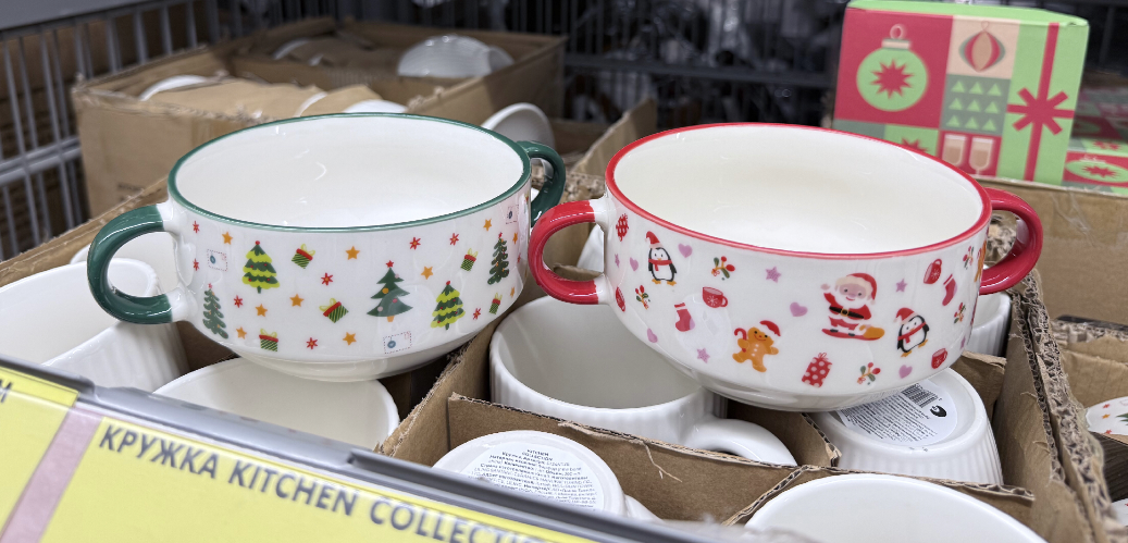 Начну с новинок. Привезли симпатичные супницы с новогодним декором. Изготовлены из керамики, объем 400 мл. На выбор представлены два варианта, в красном и зеленом цвете. Цена 299 рублей.
