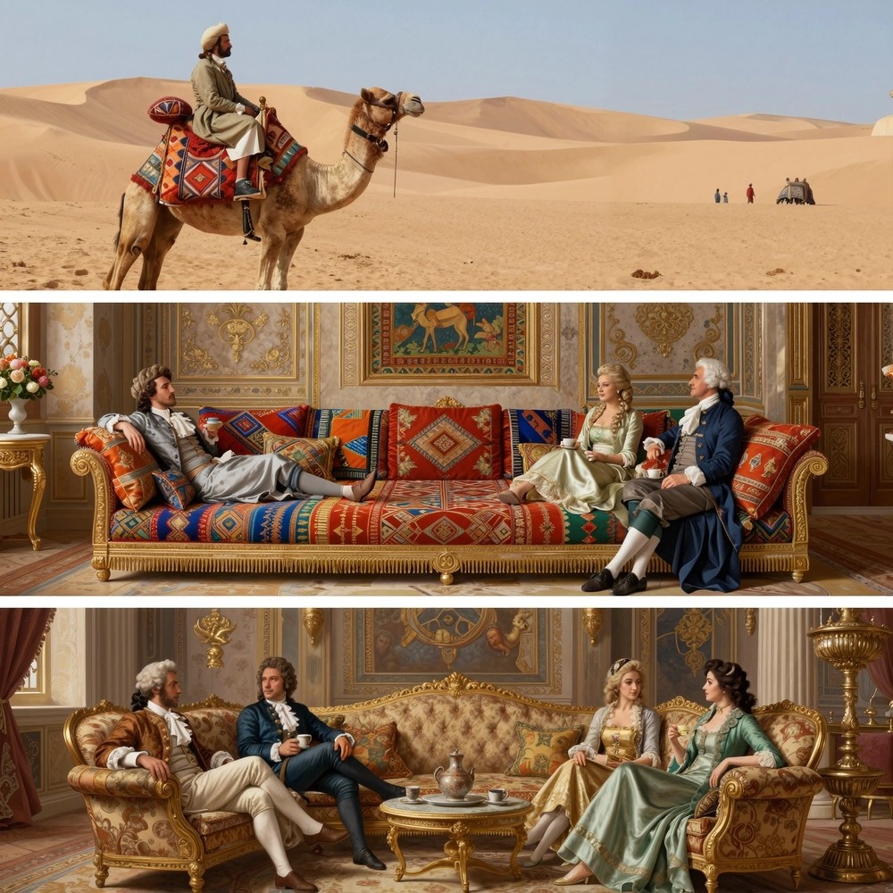 В Европу софа попала в эпоху расцвета культуры восточной экзотики и быстро завоевала сердца аристократии. В отличие от чопорных, высоких диванов, софа предлагала расслабленную, почти горизонтальную посадку. На ней не сидели — на ней возлежали, вели неспешные беседы, пили кофе и читали. Это была мебель для удовольствия, а не для церемоний.