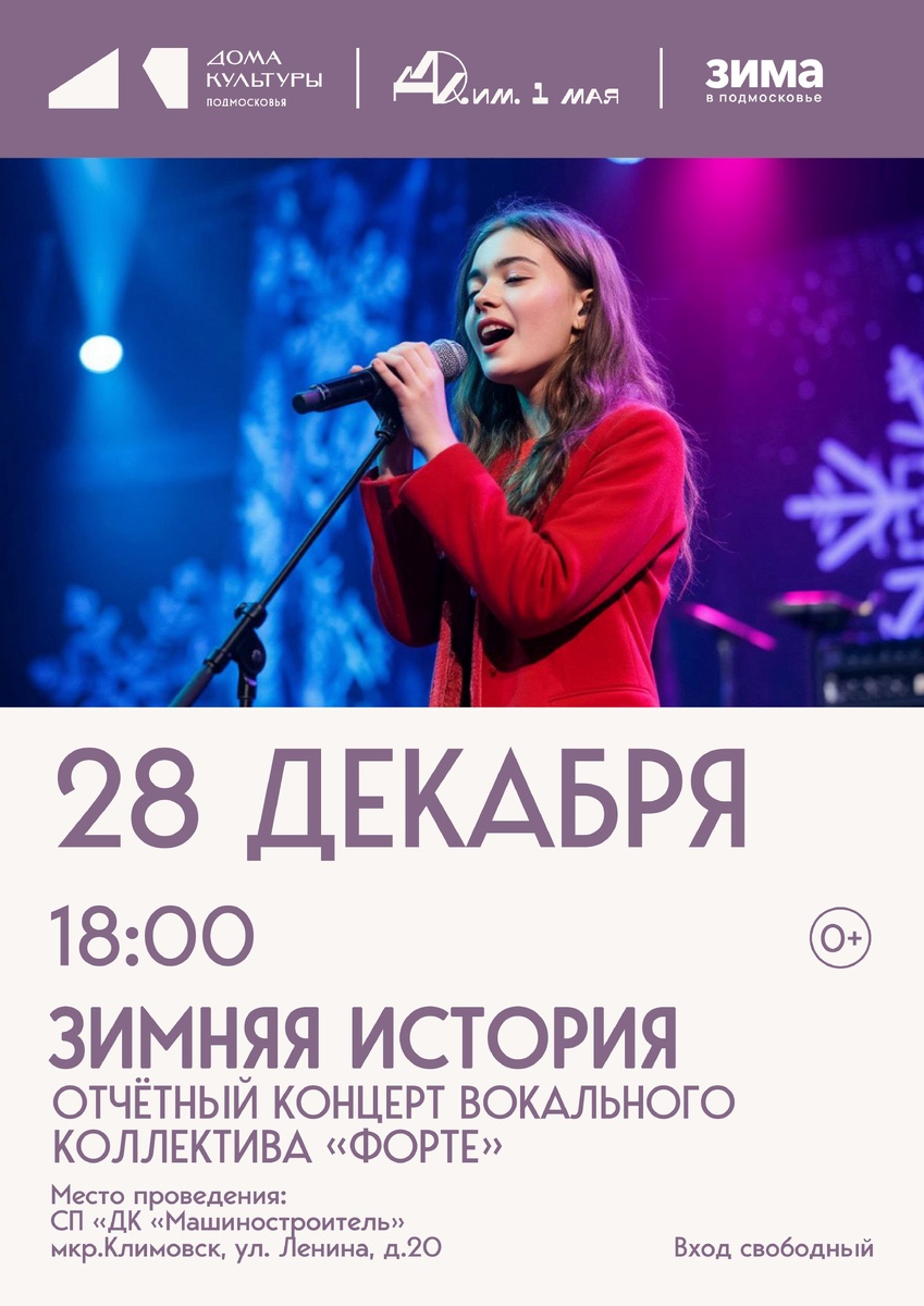 ✨ Зимний концерт эстрадно-вокальной студии «Форте» — это волшебное путешествие в мир музыки и творчества 🎼Вас ждут яркие вокальные номера, незабываемые музыкальные композиции, исполненные талантливыми участниками студии. 🚫 Возраст: 0+ 📆 28.12.2025 🕒 18:00 🏢 ДК "Машиностроитель" 📍 г.о. Подольск, мкр-Климовск, ул. Ленина, 20 💰 Вход свободный❗️ ⭐Поддержать канал голосом 🍰Где поесть в Подольске ✅ Мероприятия Подольск https://dzen.ru/id/66ed500f7b5671493eca3fd6 http://vk.com/podolsk_events http://dzen.ru/podolsk_events