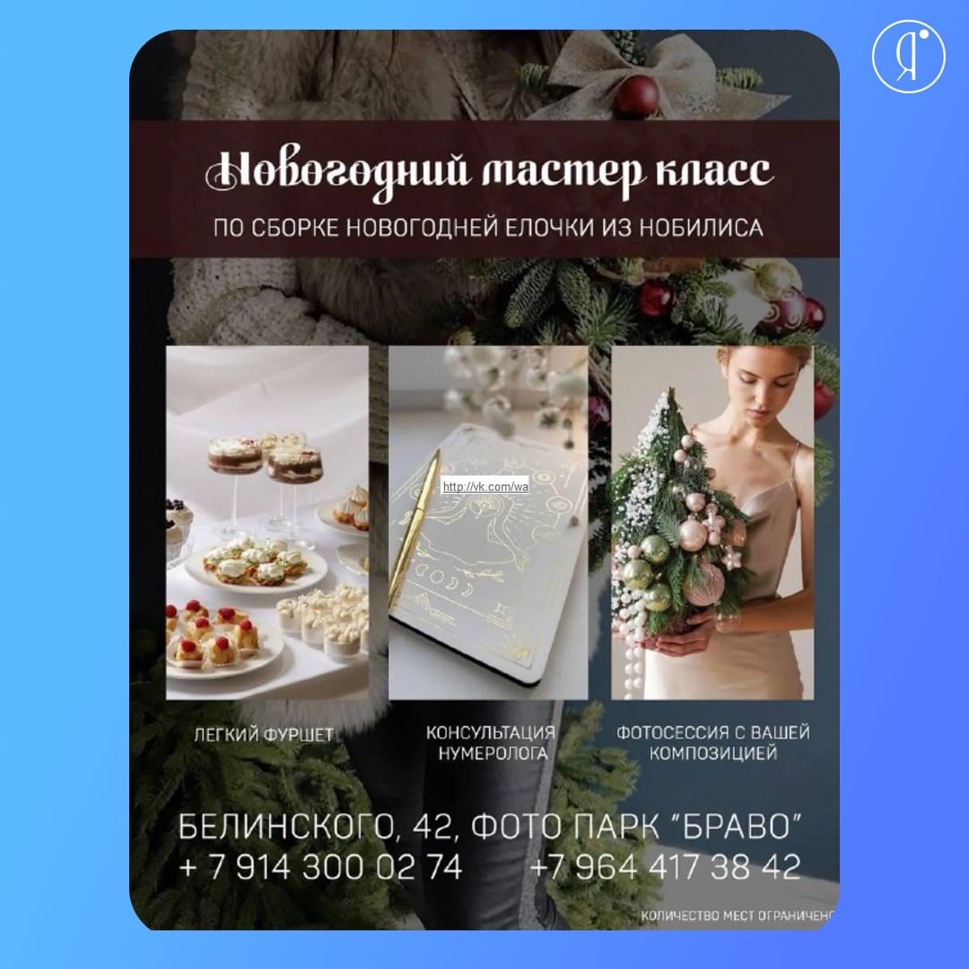 #МК Что вас ждет: • Пошаговое руководство от опытного мастера • Все необходимые материалы для создания ёлочки • Фуршет разные 🥂 напитки • Приглашенный гость нумеролог • Экспресс фото от фотографа и готовые фотографии с вашими композициями • Милые презенты каждому гостю и розыгрыш подарка 28 декабря | 12:00 | 15:00 Фотопарк, зал «Bravo», Белинского, 42 4990 руб. +7 914 300-02-74 MAX: +7 964 417-38-42 Online Якутия | Ждем вас в МАХ