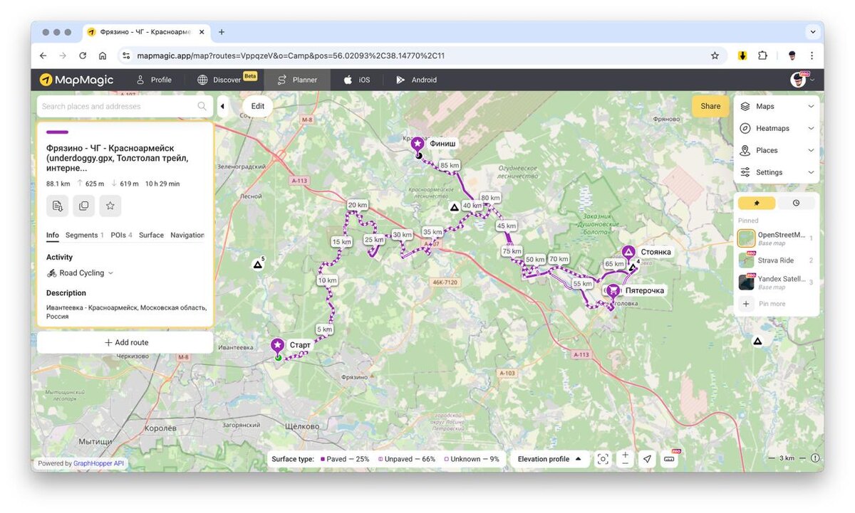 ! Пока по прогнозу устаканивается небольшой минус, было принято решение все же не ехать никуда далеко, а отправиться на проверенный спот, но другим путем. В целом прикол поездки с ВДНХ до Черноголовки в том, что ты это делаешь спокойно из дома, но тут берем фокус на зиму и на то, что хочется больше прокатиться по лесу. В одной руке держку трек Толстолап трейла, во второй руке свежий трек Андердогов, добавляю совсем немного своего хитмеп соуса и вот он - зимний, хороший, интересный трек по ближайшему Подмосковью. Жмак жмак, плановый маршрут лежит вот тут. Сегодня среда, вас ждет еще несколько потрясных постов с Алишки, но тут никуда не деться - любишь кататься, люби и саночки возить, а у меня еще 3 дня на собраться и решить, ставить ли шипованную резину. Заморачиваться не хочется, но и падать тоже. Будет видно ближе к делу. На 88 километров уже появляется набор в 600 метров, это не плоская мещера, это уже холмики. Интересно, как это будет зимой и на плюсовом сингле...