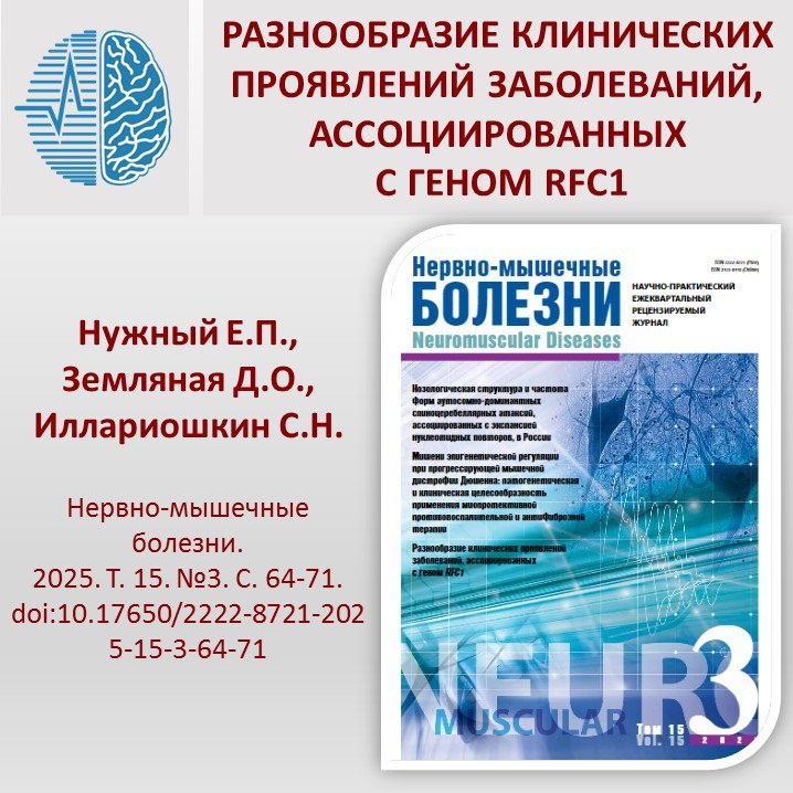 , невропатии и вестибулярной арефлексии (cerebellar ataxia, neuropathy, vestibular areflexia syndrome, CANVAS) – одной из самых распространенных причин атаксий с дебютом во взрослом возрасте. В последние годы фенотипический спектр RFC1-ассоциированных патологий значительно расширился и включает поражение мотонейронов, паркинсонизм, когнитивные нарушения, а также изолированные проявления компонентов синдрома CANVAS (полиневропатия, двусторонняя вестибулопатия, хронический кашель). В данном обзоре обобщены актуальные сведения о фенотипическом разнообразии RFC1-ассоциированных заболеваний, которые меняют представления о диагностической тактике и дифференциально-диагностических алгоритмах при CANVAS и ряде других форм нейродегенеративной патологии. Читать статью