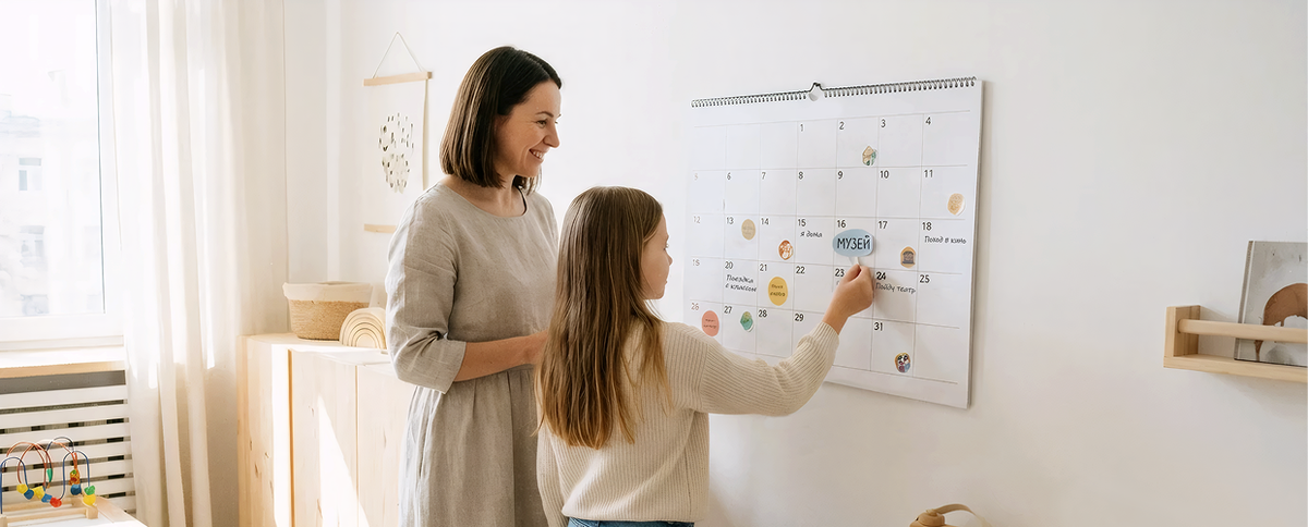 Распределяйте активности. Например, в понедельник ребёнок может посетить музей и почитать книгу, во вторник сходить на мастер-класс по робототехнике и на тренировку в спортивную секцию. Предложите ему мероприятия, полезные для образования, например, аудиокнигу по программе учебного года, образовательные игры вроде Duolingo, подготовить мини-проект – собрать гербарий или снять ролик о том, как провёл каникулы. Запланируйте совместные события: настольные игры вечером, что-то приготовить вместе, посмотреть фильм.