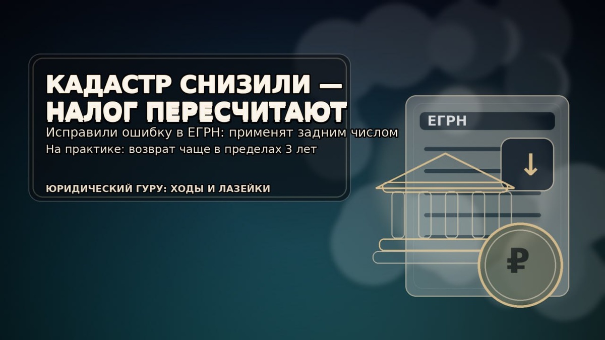 Поддержали поправки: если кадастровую стоимость снизили из-за исправления тех/реестровой ошибки в ЕГРН, её будут применять задним числом — с даты, когда ошибка попала в реестр. Если же после исправления стоимость выросла — применять только на будущее, со дня исправления (без внезапных “долгов за прошлые годы”). Ключевой нюанс: пересчитать базу можно ретроспективно, но возврат/зачёт переплаты обычно ограничен 3 годами в административном порядке. Старше трёх лет — чаще всего только через суд и с доказательством, когда вы узнали об ошибке. Мини-алгоритм: выписка ЕГРН → исправление ошибки → выписка “после” → заявление в ФНС на перерасчёт/зачёт/возврат. #юридическийгуру #ходыилазейки #кадастр #ЕГРН #налогнаимущество #перерасчет #Росреестр #ФНС #недвижимость