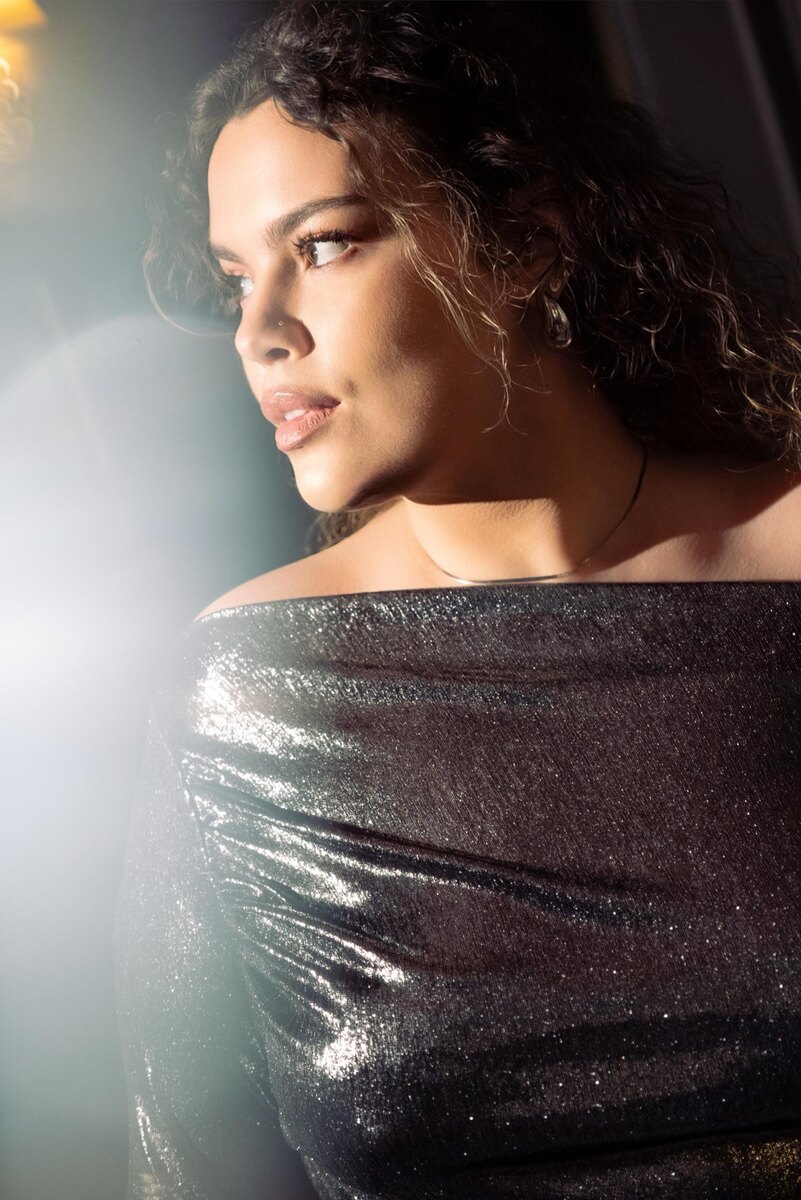 Легкий, игривый диалог света в лонгсливе JULIET, будто сотканном из россыпи звезд — мимолетная вспышка, как сама новогодняя ночь