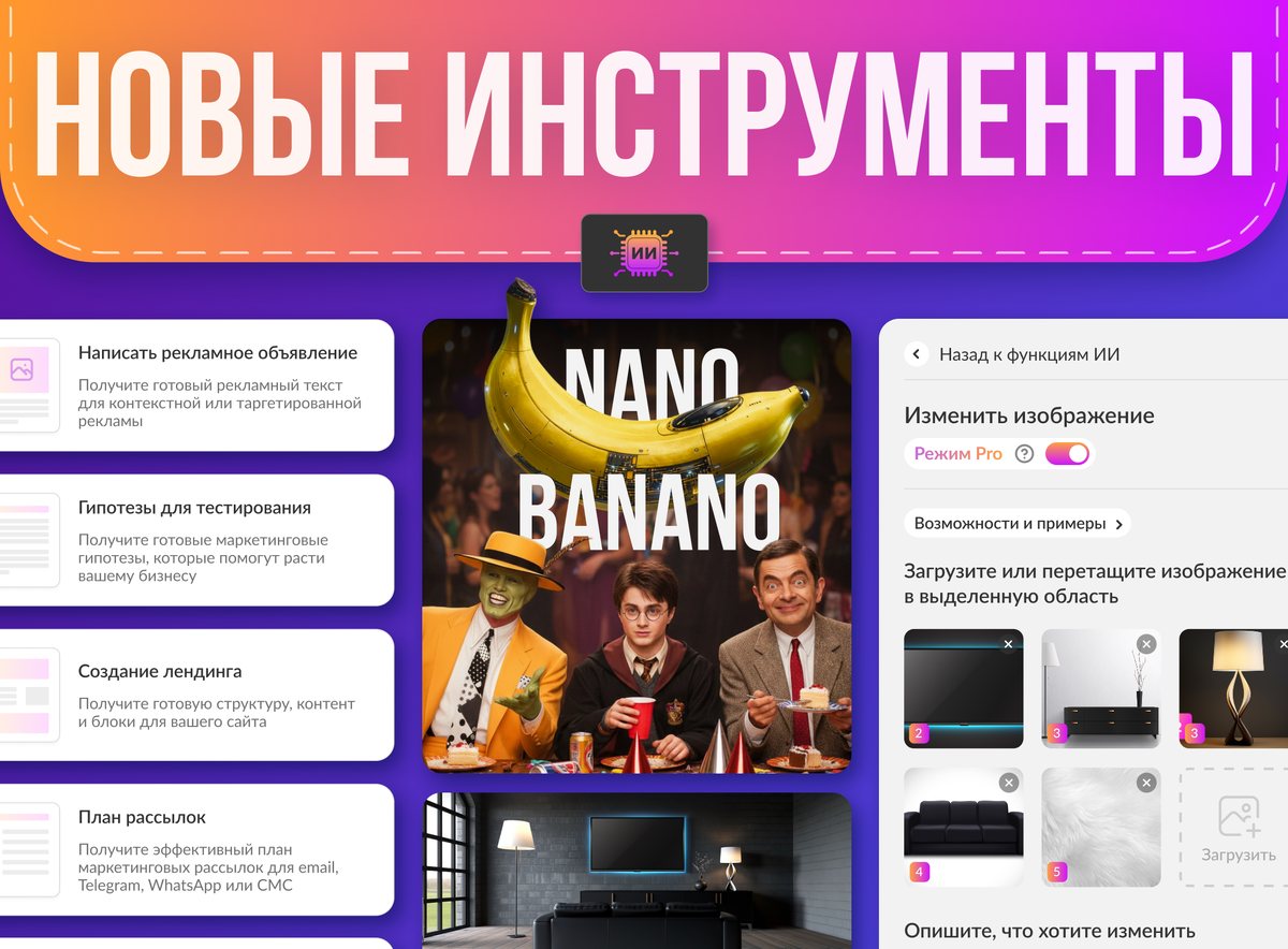 Мы подготовили набор ИИ-помощников, которые берут на себя рутинные и сложные задачи — от написания рекламных текстов до создания структуры лендинга или презентации.