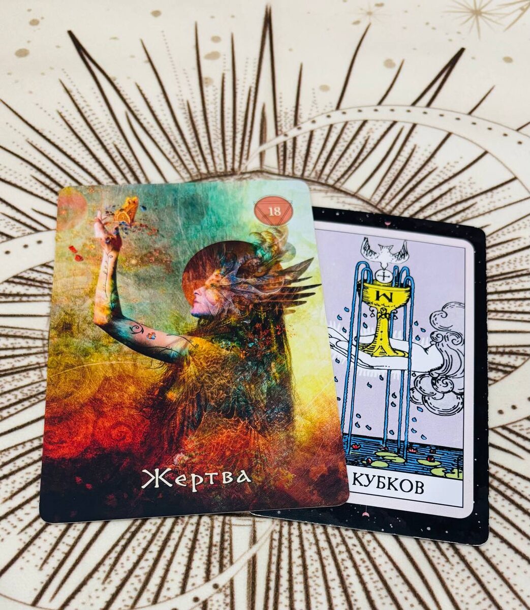 24 декабря 2025, среда Принести что‑то в жертву — значит освятить это, возвести в ранг священного. Истинное пожертвование рождается из чистой благодарности: это пир любви, который вы устраиваете для Духа. В разных традициях смысл жертвы раскрывался по‑своему. В древние времена в дар богам приносили кровь. Библия повествует, как Яхве предпочёл жертву Авеля — ягнёнка — дарам Каина, состоявшим из овощей и фруктов. А в Америке Кецалькоатль учил людей, что дух ценит не кровь людей и животных, а песни и молитвы. Карта жертвы обращается к вам с особым призывом: отдайте Духу то, что вам дороже всего. Ваша жертва не исчезнет бесследно — она будет освящена и вернётся к вам в десятикратном размере. Представьте: вы возноситесь над алтарём, у которого прежде молились, и оказываетесь за небесным пиршественным столом — там, где встречаются с божественными силами. Вы — долгожданный гость в этом пространстве благодати. Запомните главное: единственное подлинное приношение — ваше сердце. Когда дар и