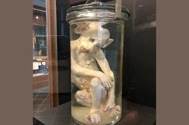 «Марсианин из Мариэтты». Это, пожалуй, самый грустный экспонат в истории уфологии, который хранится в музее Бюро расследований штата Джорджия В 1950-х годах в США был бурный всплеск случаев «наблюдения» НЛО. Космическая гонка была в самом разгаре, в фильмах показывали страшных инопланетян, а истерия времен холодной войны способствовала тому, что любые сообщения, связанные с возможными инопланетянами, чрезвычайно быстро распространялись среди горожан. В 1953 году полицейский из штата Джорджия застал странную сцену. Трое молодых людей стояли вокруг выжженного участка земли, посреди которого лежало тело маленького зеленого гуманоида. Парни утверждали, что видели еще несколько таких существ и НЛО. После того как они сбили одно из них пикапом, другие существа бросились к своему космическому кораблю и улетели. Тело инопланетянина тут же показали местному ветеринару, который сказал, что оно выглядит как нечто из ряда вон выходящее. После того как эта история получила широкую огласку и постави