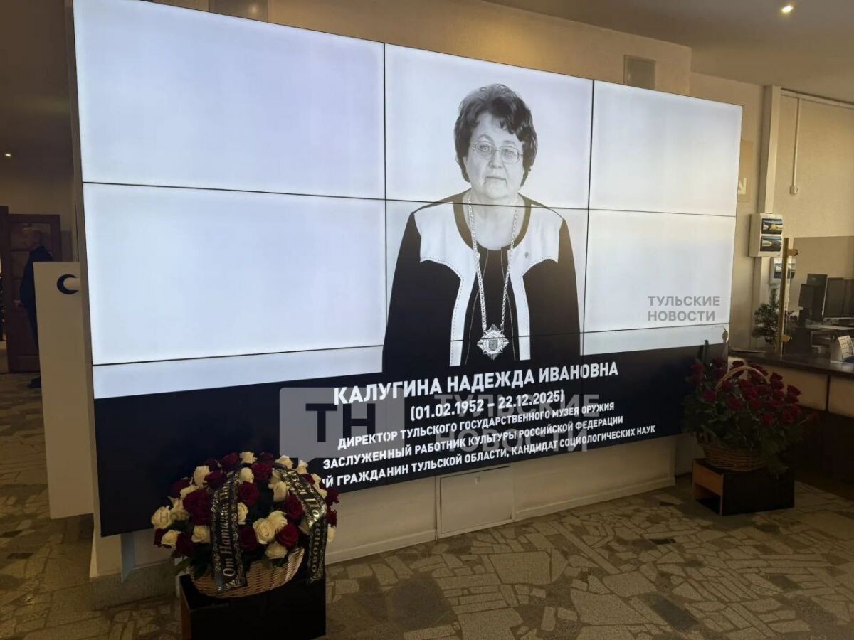Сегодня, 24 декабря, в музее оружия проходит прощание с его директором - Надеждой Калугиной. Проститься с ней и проводить в последний путь пришли коллеги, родные и близкие, а также первые лица региона: Галина Якушкина, Ольга Гремякова, Михаил Пантелеев, Алексей Эрк, Юрий Цкипури. Приехала из Москвы и экс-министр культуры и туризма Татьяна Рыбкина. В декабре 2011 года Надежду Калугину назначили директором Тульского музея оружия. Тогда учреждение культуры столкнулось с серьезными трудностями: новое здание в форме богатырского шлема, задуманное как символ города, много лет не могли достроить и сдать в эксплуатацию. Но за годы ее руководства Музей превратился в популярную туристическую достопримечательность, регулярно входящую в топ-10 самых посещаемых федеральных музеев в праздничные периоды. Вклад Надежды Ивановны Калугиной получил высокое признание на всех уровнях: Похоронят Надежду Калугину на аллее почетных граждан в Туле.