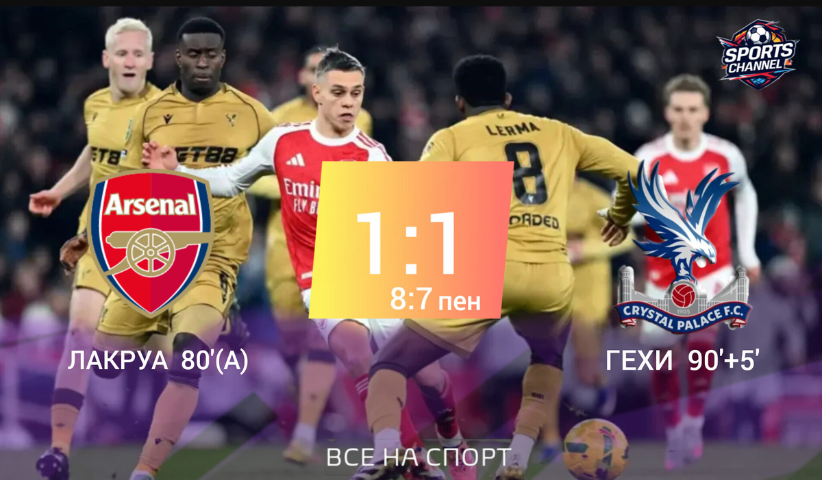 «Арсенал» победил «Кристал Пэлас» в матче 1/4 финала Кубка английской лиги. Основное время завершилось со счётом 1:1, но в серии пенальти победу одержал «Арсенал» — 8:7.