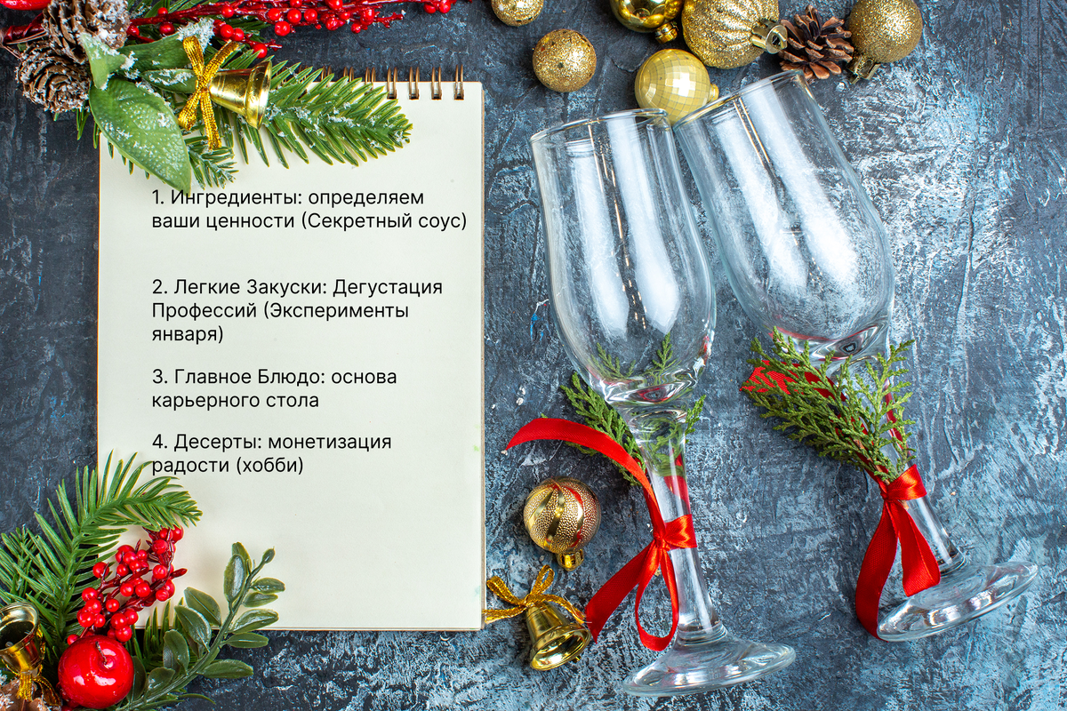 Мы предлагаем подойти к планированию карьеры, как к составлению идеального праздничного меню. В нём должны быть блюда на любой вкус, но главное — баланс и качество ингредиентов.