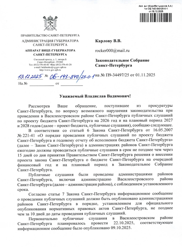 Публичные слушания – эффективный механизм для вовлечения жителей города или конкретного района в управление и принятие решений. Так, по крайней мере, должно быть в теории. На практике представители власти частенько делают все для того, чтобы люди просто не смогли попасть на слушания и не внесли свое коррективы в проекты тех или иных решений. Ежегодно в Санкт-Петербурге принимается бюджет города. Районные администрации обязуются организовать публичные слушания по обсуждению главного финансового документа мегаполиса, в котором прописаны все планируемые доходы и траты из казны. Подобные слушания должны были пройти и на Васильевском острове. Но что-то пошло не так. Районная администрация просто произвольно поменяла дату публичных слушаний о бюджете города, проведя их ранее официально назначенного дня. Местные коммунисты обратились к депутату Законодательного Собрания, руководителю коммунистов в городском парламенте Роману Кононенко, который, в свою очередь, подготовил официальные обращени