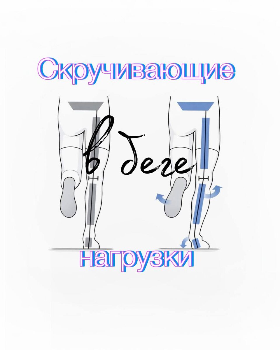 ) Есть одна вещь в беге, которую мы не видим глазами, но она может быстро разрушать голень, колено и бедро. Это скручивающие нагрузки. Представьте простую сцену: вы поставили ногу на землю и попытались немного провернуть её наружу — как будто «гасите окурок», но земля не даёт. Стопа фиксирована, а тело продолжает двигаться вперёд. В этот момент внутри ноги возникает скручивание. Учёные называют это «свободным моментом» — мерой той самой скручивающей нагрузки, которая действует на стопу, голень, колено и бедро, пока стопа приклеена к земле. Исследования показывают: чем выше эта нагрузка — тем выше риск травм. Например, у бегунов со стресс-переломами большеберцовой кости этот показатель был значительно выше, чем у здоровых. Когда скручивающая нагрузка повышается? ✔️ При выраженной пронации стопы Она особенно большая в первой половине опоры — как раз тогда, когда стопа «проваливается» внутрь и уплощается. Чем больше и дольше это происходит, тем сильнее скручивание передаётся выше.