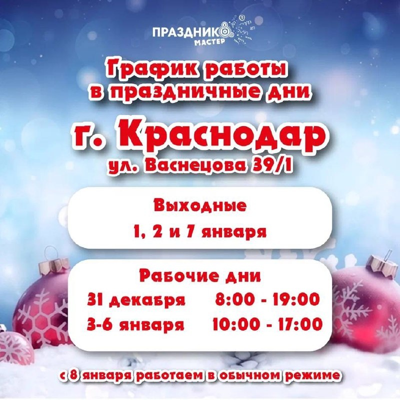 🎄График работы в праздничные дни в магазинах Краснодара!🎄