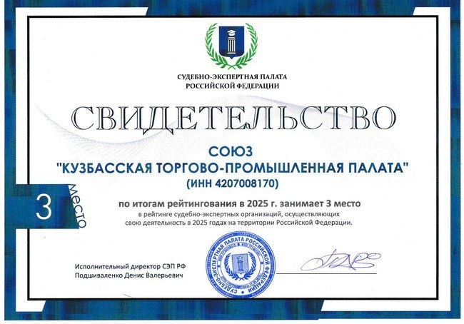 🔹Кузбасская ТПП заняла 3 место в VI Общероссийском рейтинге судебно-экспертных организаций по итогам 2025 г., который провела Судебно-экспертная палата Российской Федерации. 🔹Участники оценивались по 45 показателям в трех категориях: экспертная эффективность, деловая репутация и финансовая стабильность. 🔹Кузбасская ТПП оказывает более 15-ти видов судебных экспертиз (строительно-технические, оценочные, финансово-экономические, товароведческие, почерковедческие и др. экспертизы) 6-ой год подряд входит в ТОП-5 лучших судебных экспертных организаций России. 🔹Президент Кузбасской ТПП Татьяна Алексеева подчеркнула, что для палаты это не просто награда, а объективное подтверждение высоких стандартов экспертной деятельности. Ежегодно палата выполняет 350-400 судебных экспертиз, в её штате более 15-ти опытных экспертов по разным направлениям. Более подробно https://kuztpp.ru/ru/news/594046/