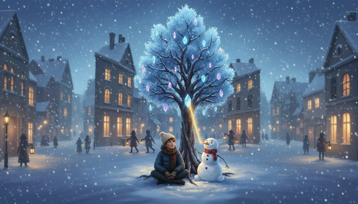 📖 Глава девятая: «Фонарик в метели сомнений» Утро 9 декабря Девятая бусина-фонарик светила ровным, но неярким светом. Внутри неё будто кружилась миниатюрная метель. Когда Марк сосредоточился на ней, он почувствовал тревогу — не свою, а чью-то чужую, разлитую в зимнем воздухе. — Сегодня нужно искать не человека, а потерянную уверенность, — сказала бабушка Лидия. — Кто-то стоит на распутье и боится сделать шаг. Его внутренний фонарик почти погас. Соня, потрогав замёрзшее оконное стекло, прошептала: