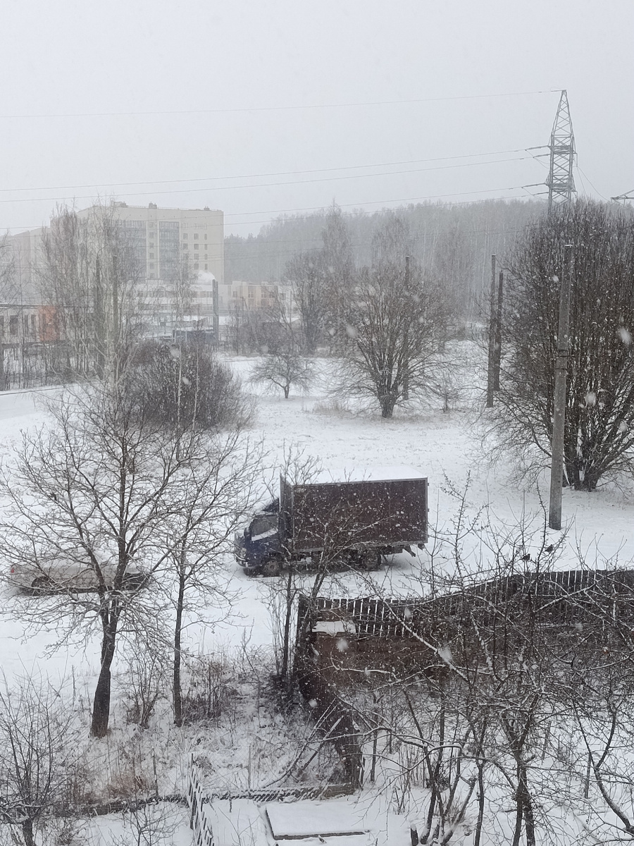 Итак, двор встретил пушистым ковром. Толстеньким, мягоньким, беленьким.
