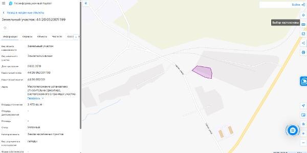 Название: Земельный участок (право собственности) с кадастровым номером 44:26:052001:199, площадью 3470 кв