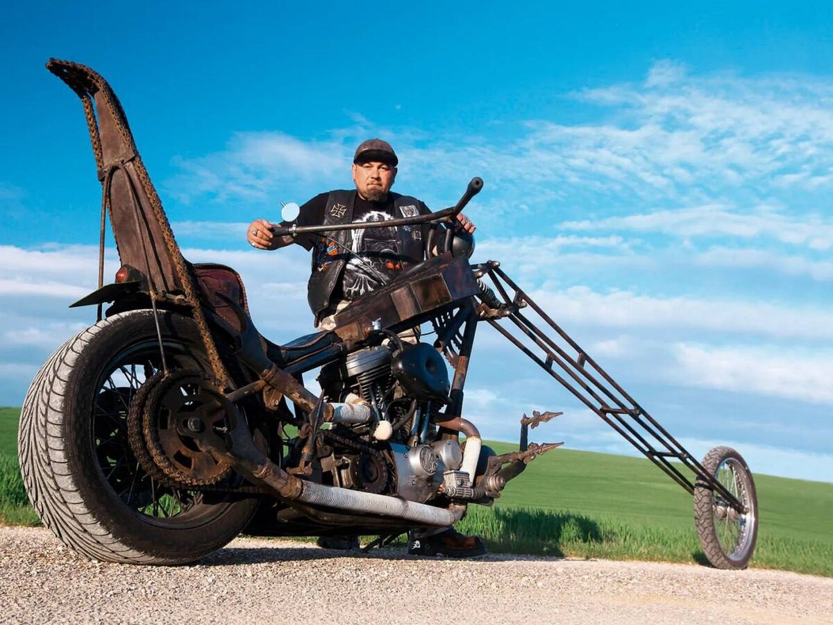 Вот вам история про чоппер, который родился в руках обычного учителя из Франции. Этот зверь появился на свет не в каком-то модном кастом-ателье, а в гараже, полном хлама, в сердце Южной Франции. Знакомьтесь: его зовут Бруно, а его байк — длиннющий, как очередь за кофе в час пик. Этот монстр впервые показал себя на Swap Meet and Oldschool-тусовке в маленьком городке Мекрен, Лотарингия. Если вы не знаете, что это за местечко, то скажу так: это эпицентр сумасшедших идей на двух колесах. И вот, вы стоите, пьете кофе, как вдруг слышите рев, будто какой-то дракон проснулся. Выхлопные трубы? Ага, они чуть ржавые, и звук от них настолько громкий, что у птиц в радиусе пяти километров, наверное, начинается мигрень. Основа байка — мотор от Harley-Davidson Sportster 883 1991 года. Все остальное? Полный DIY. Рама, вилка, руль — Бруно сварил их из кусков старого металла. И, внимание, задний привод — это зубчатые колеса от французского танка. ТАНКА, Карл! Идея, что танковый металл теперь служит д
