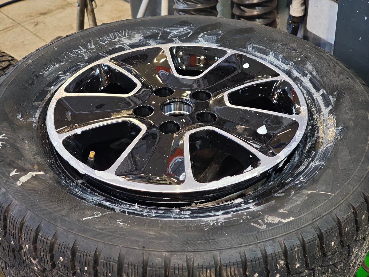 Всем привет! Проездил на литых заводских дисках 8 лет. Возможно я бы и дальше на них ездил, но летом официальный дилер стал их продавать по 4500-6000 рублей (брал 9 дисков по разной стоимости). Артикульный номер Renault 403003865R . К ним отдельно купил новые ниппели. Ниппели брал по оригинальному артикулу Renault 7700801863 . Сегодня ценник около 16 тысяч рублей, так как сезон переобувок. Стоили по 97 рублей. Cегодня ценник уже 99 рублей. Увидел на ниппелях маркировку TR414, думал это артикул и аналог какой-то. Но нет, на моих заводских с завода так же было. Не очень разглядел, но вроде на новых был логотип Ваза). Ну оно и понятно, по этому артикулу и на ВАЗ есть. Взял зимние колёса в сборе свои Nodrman 7 SUV, новые диски и ниппели. Отправился в Логан Шоп на Портовой на демонтаж, монтаж). У них , если что, и в других частях города точки. Ребята быстро произвели все эти работы, повозились немного с секретном болтом на заднем правом колесе). Что могу написать... Диски классные, глянц