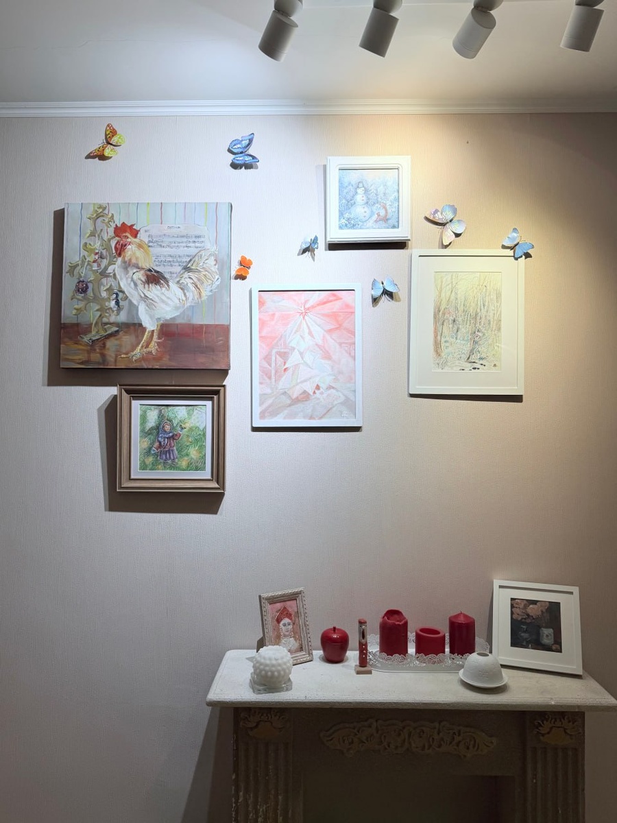 Получился квартирник. Недавно закончилась выставка "Волшебство Нового года", которую мы организовали с подругами-художницами, чтобы порефлексировать на тему ожидания Нового года и Рождества.