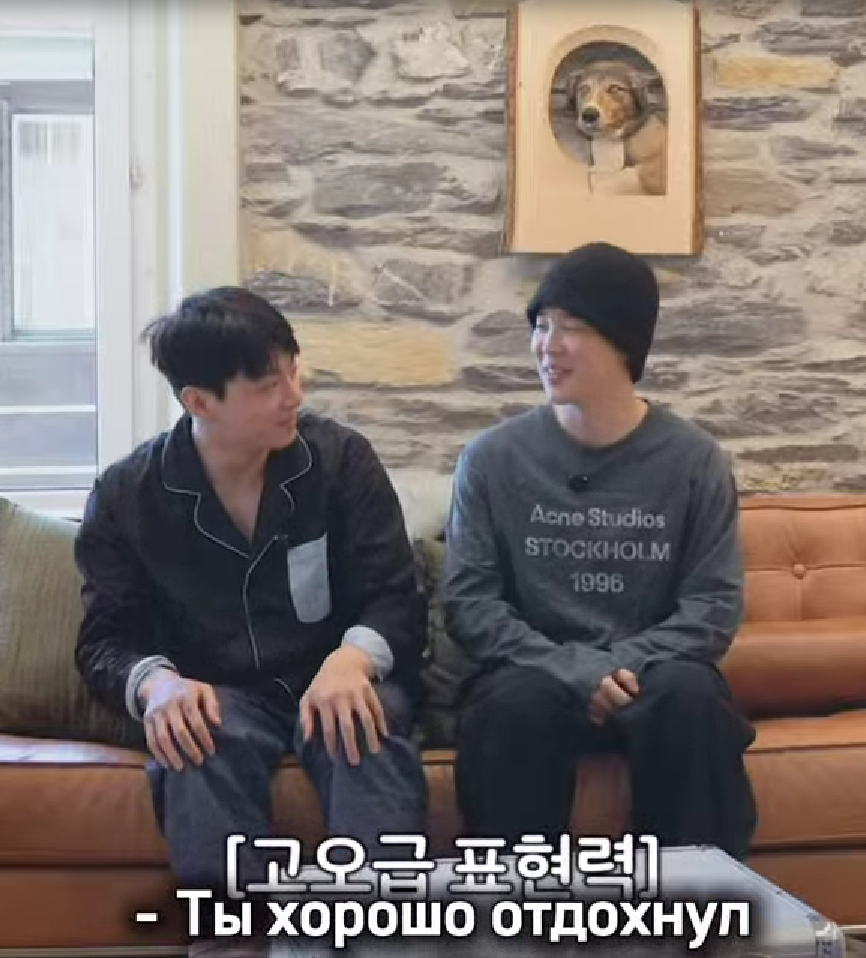 Поутру Чонгук проснулся рано - полюбовался окрестностями и отправился поднимать Чимина: Не дав им толком продрать глаза, стафф усадил ребят играть в шарады: Чимин показывал заданное понятие, а Чонгук угадывал. Сначала были эмоции, и Чонгук отгадал не все - возмущался, что у Чимина все одинаковое. Потом отгадывали животных, и Чонгук не опознал страуса и морского льва: со львом он двигался в правильном направлении, но никак не мог произнести "морской", говоря вместо этого "плавающий". Но все-таки выиграли и получили в награду свободный день. Правда, Чимин опасался, что у них отберут телефоны, как было обещано, но в этот раз пронесло. Чимин влез в интернет, чтобы выбрать развлечения на сегодня. Как и следовало ожидать, первым развлечением оказался ресторан, куда парни и отправились. Машину на сей раз вел Чимин, а Чонгук боролся с навигатором, который сначала направил их в какую-то пиццерию. По дороге Чонгук изображал целый оркестр, издавая музыкальные звуки, а потом они завели философск