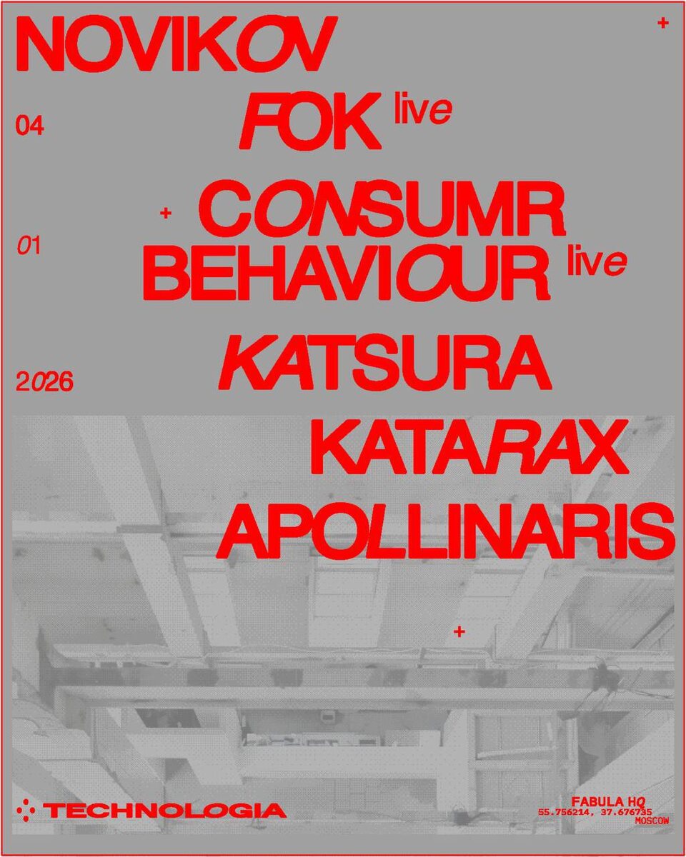 Молодая и амбициозная промо команда отмечает 1 год проекту рейвом в индустриальном пространстве fābula HQ. В программе лайвы от Consumr Behaviour и Fok, скоростные сеты от Novikov, Katsura, Katarax и Apollinaris. Каждый со своим нетривиальным прочтением современной клубной сцены от техно и текно до транса и экспериментальных форм. 🎟 Билеты 📆 4 января, в 22:00 📍Fābula Hq, Москва, Самокатная ул. 4с1