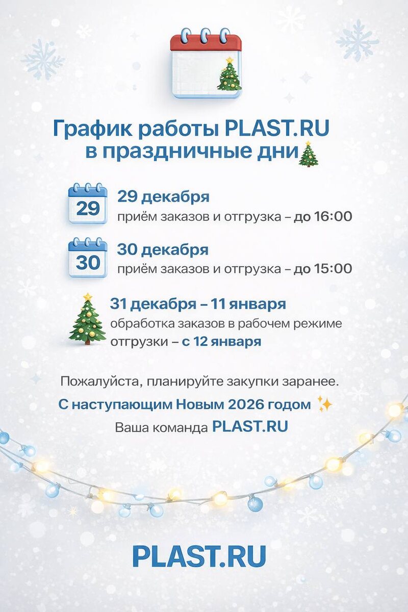 ♐️ Информируем вас о графике работы офиса и склада компании PLAST.RU в конце декабря и начале января