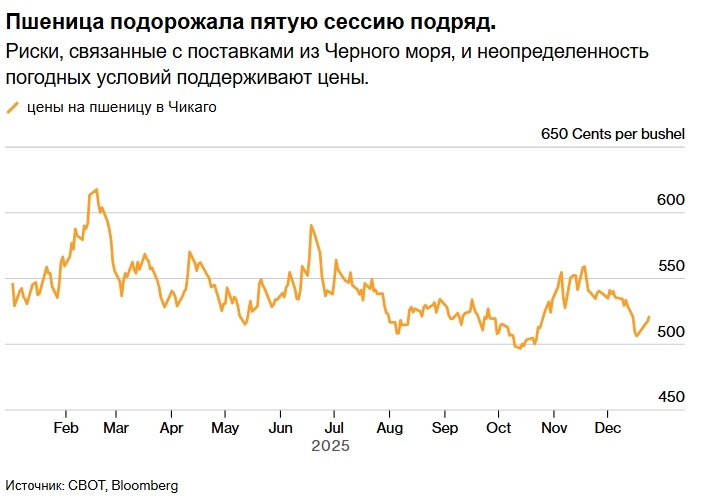 Ранее Путин предложил «отрезать» Украину от Черного моря из-за атак на танкеры в конце ноября. Действия украинской стороны он назвал пиратством. В Чикаго фьючерсы на пшеницу демонстрируют устойчивый рост на протяжении пяти сессий подряд, достигнув самого продолжительного периода повышения с апреля. Рост цен обусловлен рисками, связанными с поставками из Черноморского региона, и неопределенностью погодных условий. Украинские власти сообщили, что во вторник российские войска осуществили ракетные и беспилотные удары по территории Украины, что привело к повреждению энергетических и портовых объектов в Одесской области на Черном море. Это стало продолжением серии атак, нанесших значительный ущерб инфраструктуре обеих стран. Обе страны являются ключевыми экспортерами зерна и растительных масел, и произошедшие события создают угрозу для стабильных поставок из региона. Президент России Владимир Путин предложил радикальный ответ на украинские атаки на танкеры в Черном море — полностью изолирова