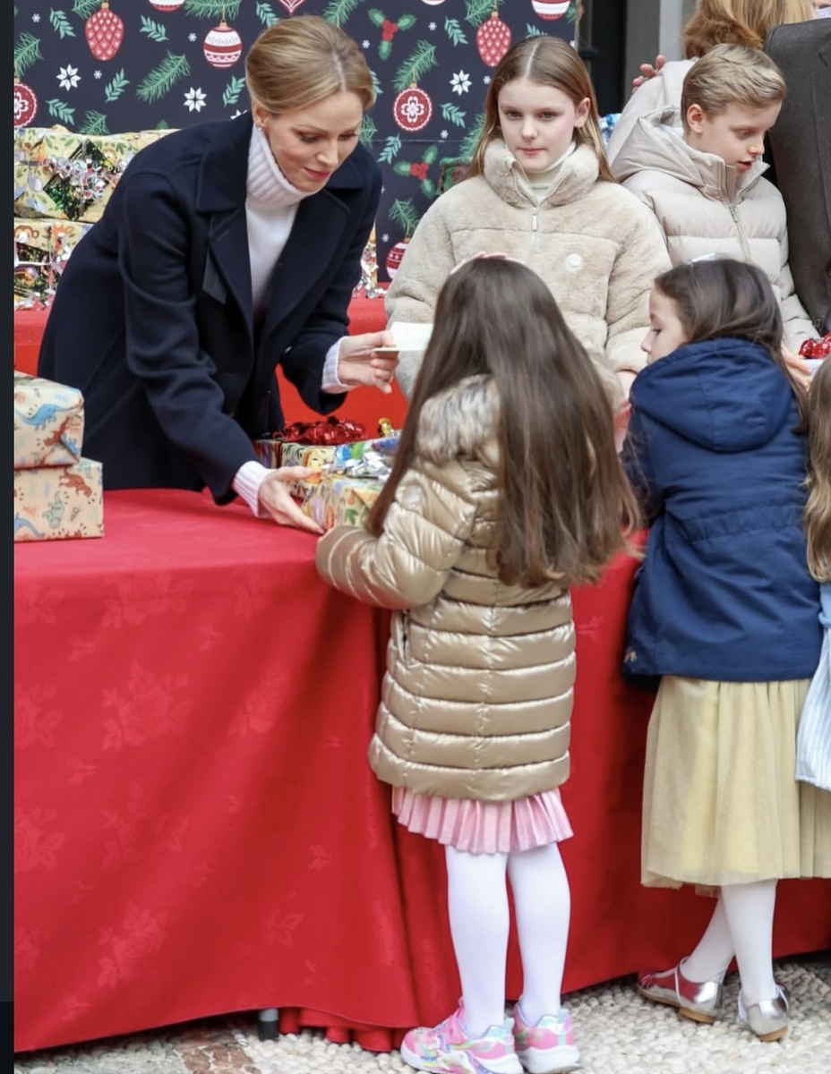 Она собралась в Почетном дворе Княжеского дворца Монако, чтобы приветствовать юных жителей Монако под традиционной рождественской елкой.