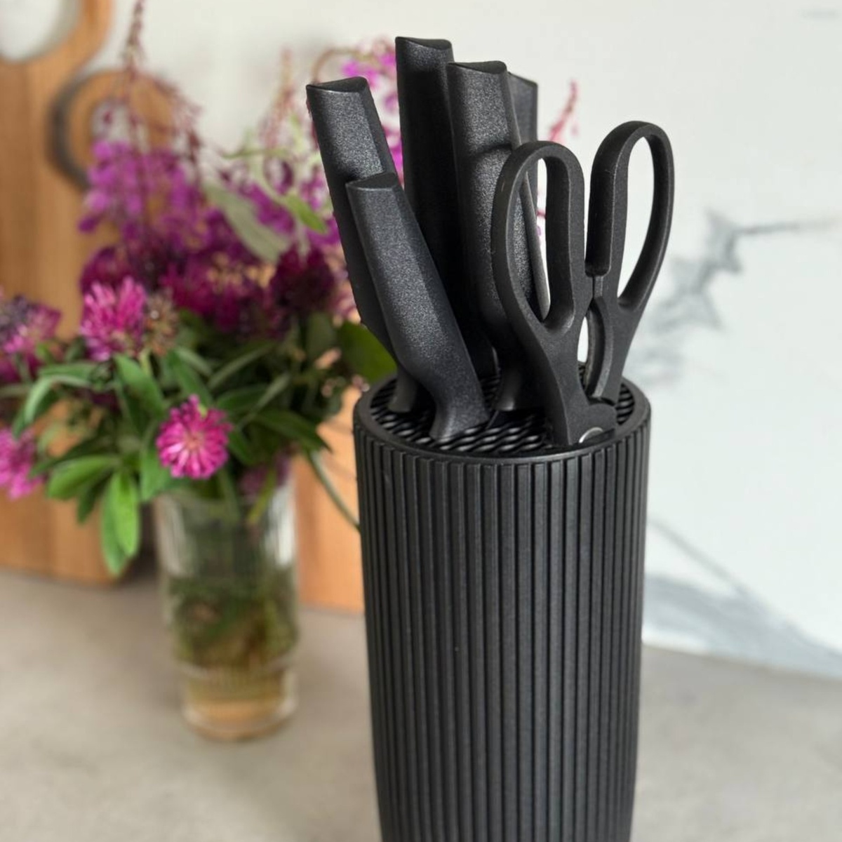 Любой нож значительно улучшает качество конечного продукта, если грамотно подобрать его под необходимую задачу. Не зря существуют наборы — чтобы все варианты были сразу под рукой. Когда инструменты работают за тебя, процесс готовки превращается из рутины в удовольствие. Именно поэтому хочу поделиться находкой, которая стала моим кухонным счастьем. Мои любимчики: два узких, один совсем малыш, делают основную работу. Чистка и нарезка овощей, шинковка зелени, идеальные кусочки фруктов для детей. Шеф нож Широкий длинный и бесконечно удобный для нарезки и готовки в целом, как король кухни. Ну или один из главных инструментов короля))) Обвалочный Использую, когда работаю с мясом и рыбой. С ним всё аккуратно, быстро, чисто. Эффективно справляется с отделением мяса от костей и других трудных участков. Для домашней кухни — огромный плюс, особенно если вы часто покупаете продукты целыми кусками. Хлебный нож Незаменим для нарезки свежего хрустящего хлеба, почти лучший друг с утра. Зубцы идут мяг