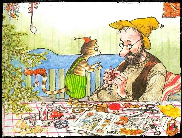 Когда-то Устинья побывала в Швеции и осталась под впечатлением от путешествия. Правда, люди показались довольно холодными и отстраненными. Что ж, на то она и Скандинавия. А вот творчество у шведов, особенно в детской литературе, совсем другое. Вспомним хотя бы Астрид Линдгрен с ее Карлсоном, Эмилем, Пеппи, Рони. Даже опасные приключения описаны как-то на редкость уютно и тепло. Астрид Линдгрен – главный, если угодно, «классический» литературный бренд Швеции. А едва ли не главный современный – чудесная парочка Петсон и Финдус, мужчина и его кот. Они в Швеции повсюду: на прилавках книжных магазинов (истории про них сочинил и нарисовал писатель и иллюстратор Свен Нурдквист), в кино, в сувенирных лавочках. Неудивительно, что их так любят, персонажи и правда очень живые и трогательные. Петсон – немолодой одинокий чудак, живущий на окраине деревушки и постоянно занятый созданием самых разных агрегатов для улучшения хозяйства. Финдус – озорной непоседливый котенок, получивший свое имя пото